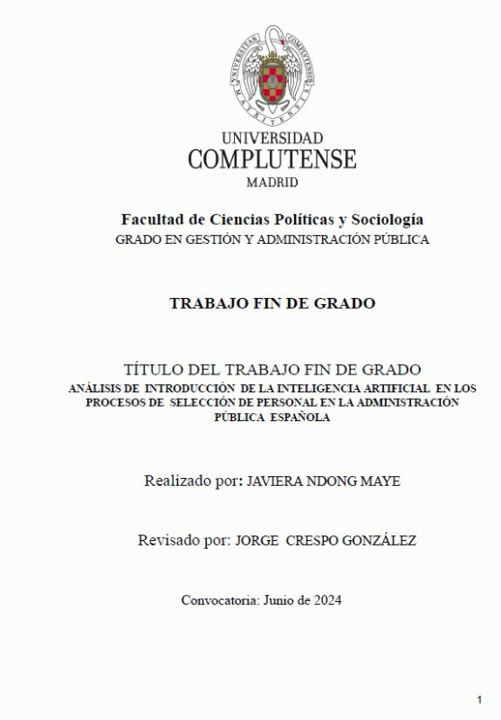 Análisis de introducción de la Inteligencia Artificial en los procesos de selección de personal en la administración pública española / realizado por: Javiera Ndong Maye ; revisado por: Jorge Crespo González [Recurs electrònic]