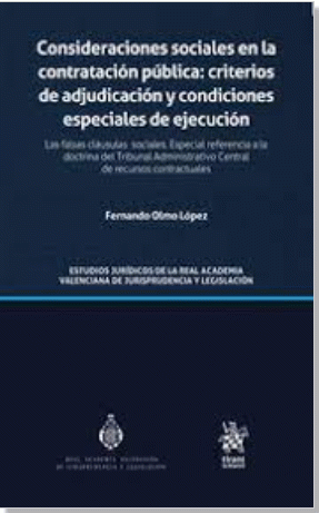Consideraciones sociales en la contratación pública: criterios de adjudicación y condiciones especiales de ejecución : las falsas cláusulas sociales. Especial referencia a la doctrina del Tribunal Administrativo Central de recursos contractuales/ Fernando Olmo López